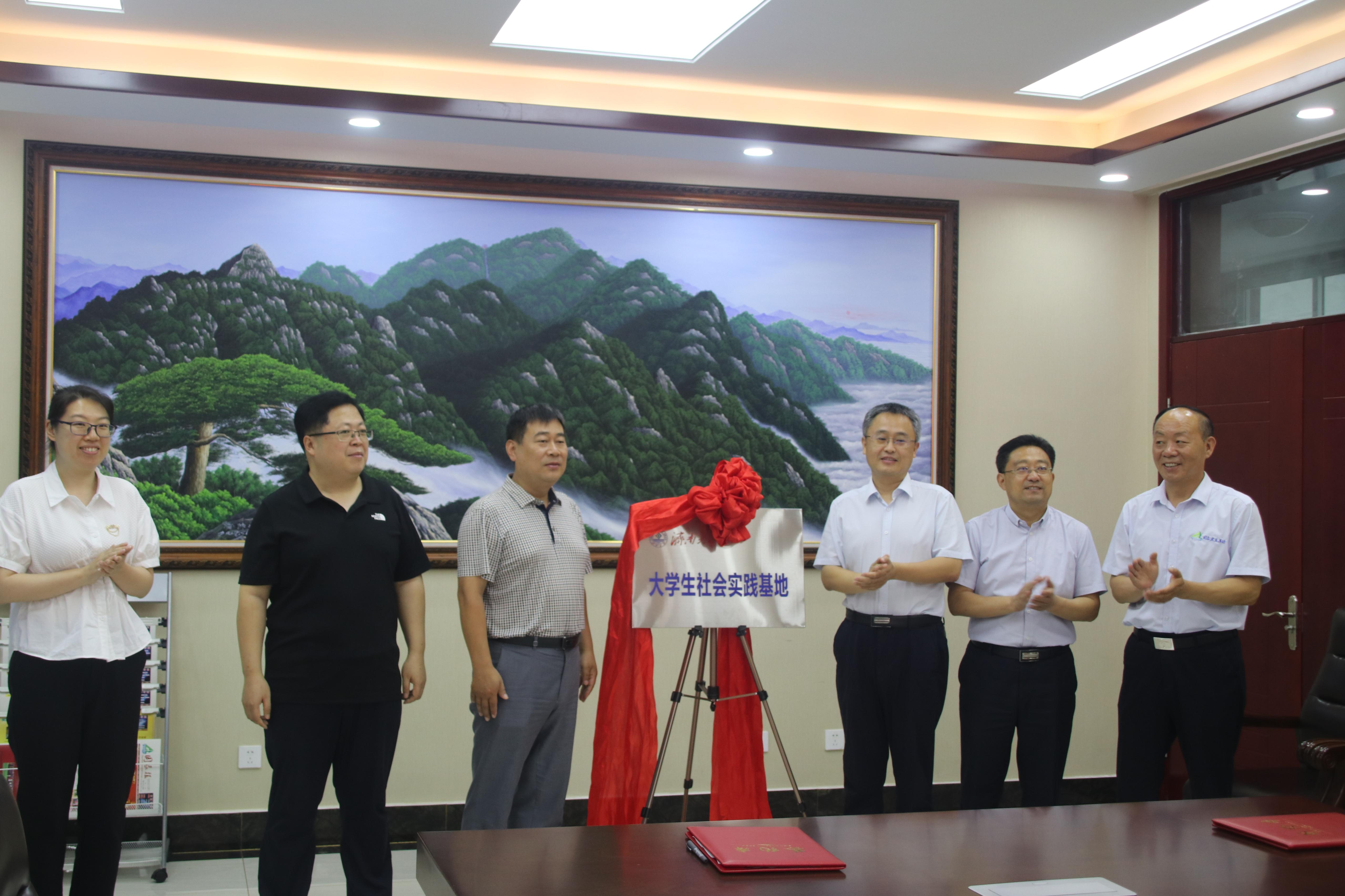 王仲鹏副院长与马立新董事长签署了共建大学生社会实践基地协议,王义书记、李晓林副部长为基地揭牌。
