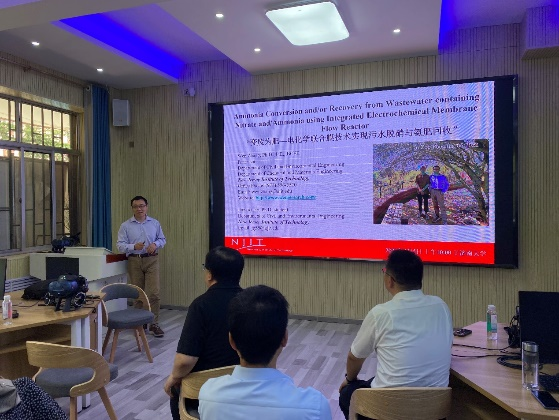 会上,张文教授首先对氨合成工业的发展以及当前活性氮对生态环境的影响进行了简短评述,然后用浅显易懂的语言为大家科普了如何利用电化学与材料科学相结合的方式,将污水中的硝态氮还原成为氨氮,并进一步制备成为硫酸铵液体肥料的途径。该技术实现了废水中硝酸盐和氨的高效分离提纯,有望应用于农业和水产养殖领域的废水处理和水肥资源化方面,进而降低生态环境污染和实现资源的有效回收。