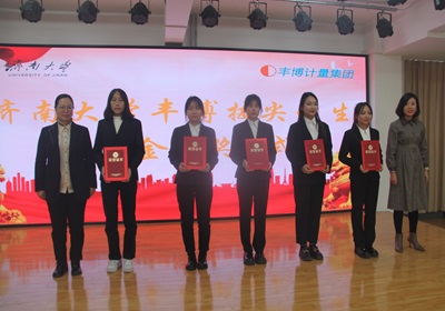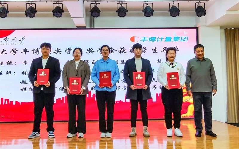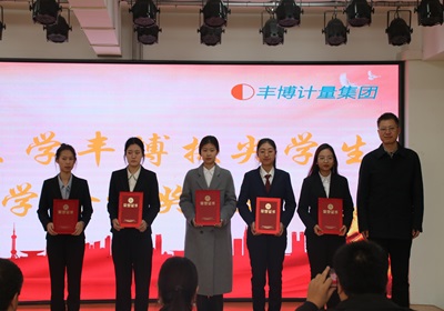 丰博拔尖学生奖学金颁奖仪式举行,91届校友、丰博计量集团董事长杨德柱应邀出席颁奖仪式,丰博智能水联网公司市场部总监朱琛燕、集团人力资源部经理路伟,学校党委学生工作部(处)、合作发展处、成人av