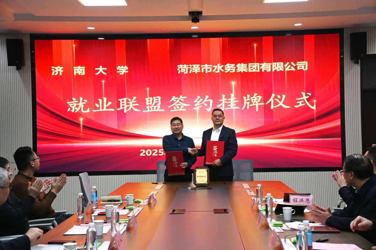 副书记、副院长张良红与菏泽市水务集团有限公司常务副总经理李琦分别签署就业联盟协议。