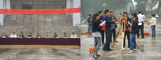 院长兼党委书记马振民宣布比赛正式开始。本次比赛的目的旨在提升学生动手操作的能力,使同学们在学习课本理论知识的同时,能更好的理论联系实际;不但能熟悉、掌握测量技术,还能够增强团队合作意识,提高同学们的综合素质。比赛分水准组和经纬组,每组两人,分场地同时进行。在时间及精度的要求下,参赛选手对规定路线和角度进行了测量及计算,测量过程彼此中配合默契、操作认真,展示了成人av同学们精湛的技能和良好的精神风貌,不但赛出了水平,还增进了友谊和交流。经过一上午紧张的比赛,最终选出了比赛的一、二、三等奖及优秀奖,并由各位嘉宾颁发证书,在同学们热烈的掌声中此次的比赛接近了尾声。