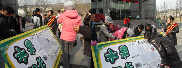此次水果贺卡活动全国环保协会统一举行,并配有统一的海报、环协标签及活动绶带等。活动主要分为订单报名和水果贺卡派送两个部分。在订单报名过程中,格润环保协会的成员每天轮流在八食堂和二食堂前值班。天气虽然寒冷,但协会的干事们为了牵起我校学子与其他学校学生的情谊不畏寒风坚守着自己的岗位。在平安夜、格润环保协会成员充当着圣诞老人,给我校的学生们配发了包装精美的平安果贺卡。接到水果贺卡的同学都因为收到寒冷冬夜里的祝福而异常兴奋倍感温暖。而活动的最后,格润环保协会代表香港环境保护协会给团委老师敬送了贺卡。