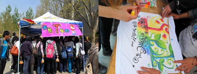 学生会外联部及宣传部联合举办的“我的设计我作主”手绘T恤活动于2011年4月13日在八食广场顺利举行。本次活动形式新颖,迎来了学生们的广泛关注及其好评。