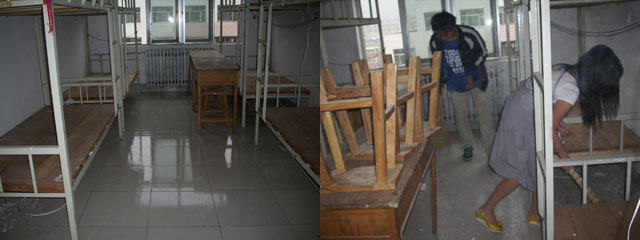 学生会自律会干事自发的打扫了学四新生宿舍。