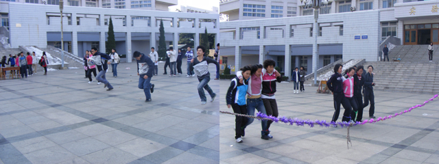 团委主办、学生会女生部承办的“趣味、全能”运动会在实验楼前广场隆重举行,09级全体同学参加了此次比赛。