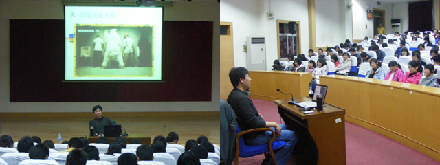 的毛明教授,他细致明确的向同学们讲述了保持快乐心灵的各种技巧,语言幽默风趣。毛明教授分别从目标的追求、与他人相处和对自己的认识评价等方面逐点剖析,为同学们解答了跨入大学所面临的各种问题,帮助同学们走出心理误区。毛老师结合真实案例和图片资料,用轻松诙谐的谈吐加深同学们的理解。本次讲座在同学们的笑声与掌声中圆满结束。