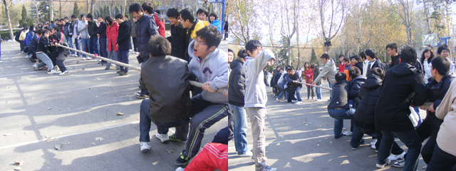 自律会主办的拔河比赛08级决赛在东校区篮球场激烈展开,参赛者为08级通过初赛的四个优胜队。学办杨老师亲临现场,为同学们加油鼓劲。