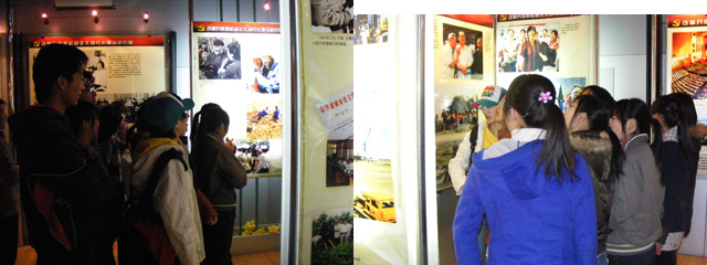 庄严肃穆的环境及丰富的历史图片资料,生动形象地展现了我党从弱小走向强大,再到取得现代化建设丰硕成果的历史轨迹。同学们认真的浏览参观,并在遵义会议、飞夺泸定桥等重要历史事件介绍前驻足细心观看,充分领略了革命先辈们坚强不屈、百折不挠的革命精神,更为他们贴近群众、不畏艰险的高尚情操所打动。