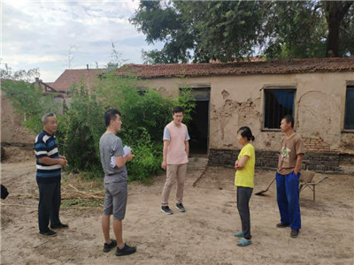 8月23日上午,团队从利津县水利局了解到调查村落的基本情况与当地水利建设的基本情况。下午,在水利局工作人员的带领下,团队成员先后前往菜于村和双高村进行实地考察。成员们来到村委会,从村里的户数、耕地面积、地势高低、河道情况、下雨排水情况、危险区以及水利设施的齐全程度等方面向工作人员进行详细询问。随后,团队前往村子里受灾严重的住户家进行实地调查询问,最后,团队成员围绕村子里的小沟、暗渠、排水系统进行逐一考察拍摄并纪录。