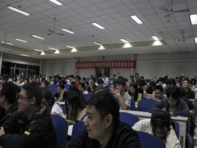 随后,白健老师针对2016级准备就业的同学们着重讲解就业推荐表等一系列毕业工作,又对准备考研的同学们表达殷切关怀与嘱托并提出三点要求:一、希望同学们可以在剩下的87天中,拥有健康体魄和良好心态,以积极地备战考研;二、沉着应对考试大纲的变化,按照原学习计划准备;三、抓住一切学习机会,充分利用即将到来的十一假期。在最后的提问环节,桑国庆老师、宋鹏老师、赵春辉老师有针对性地为同学们解答疑惑