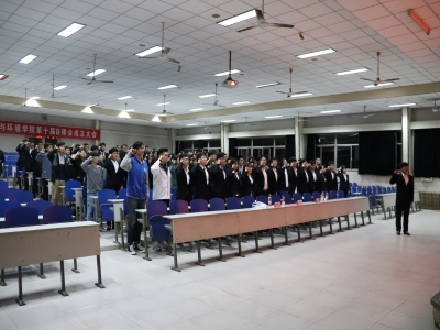 大会中张良红书记、尹鑫老师、高蓉蓉老师为主席部长们颁发聘书,结束之际全体自律会成员共同宣誓,场上每个人表情庄重严肃,体现了全体成员为建设好自律会而努力的决心。恰逢自律会成立十周年,老师与同学们举办庆祝活动,共同分享了生日蛋糕,大会在愉快的氛围中结束。