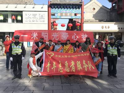 于芙蓉街周边交通路口组织交通指挥志愿公益活动,齐鲁志愿者协会外联部部长张华来到现场指挥,学生志愿者积极参与。