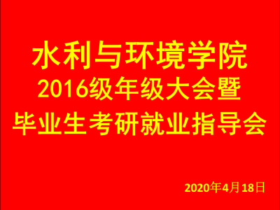 于腾讯会议召开2016级年级大会暨毕业生考研就业指导会。学院党委副书记副院长张良红、分管研究生工作副院长王仲鹏、水利系系主任桑国庆、环境系系主任赵春辉、地理系系主任宋鹏、毕业班全体班主任、毕业年级辅导员白健及2016级全体本科毕业生参加此次会议,会议由白健主持。