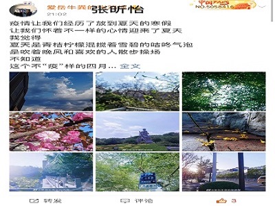 水环心动力微博收到了许多同学的关注和私信,同学们利用五一小长假的时间,精心准备并细心挑选自己的优秀摄影作品,同时附上在疫情期间的心得体会,而后将作品发布到微博平台上。活动结束后,经评审团斟酌评比,获奖情况如下:环境1901班获得优秀组织奖;马若雅同学获得一等奖;张译文同学获得二等奖;吕婧菲同学、杨雪纯同学和张凯迪同学获得三等奖。获奖选手和获奖班级分别获得相应的到梦空间加分,同时,获奖作品已在成人av