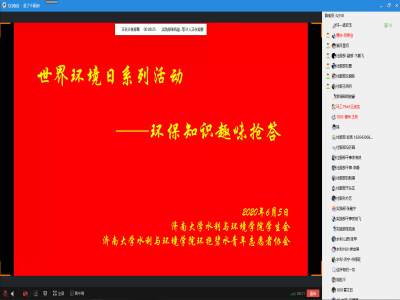 于6月5日晚七点三十分在线上开展环保知识趣味抢答活动。青年志愿者协会会长厉照业,学生会社服部部长沈晓姝参加此次活动。