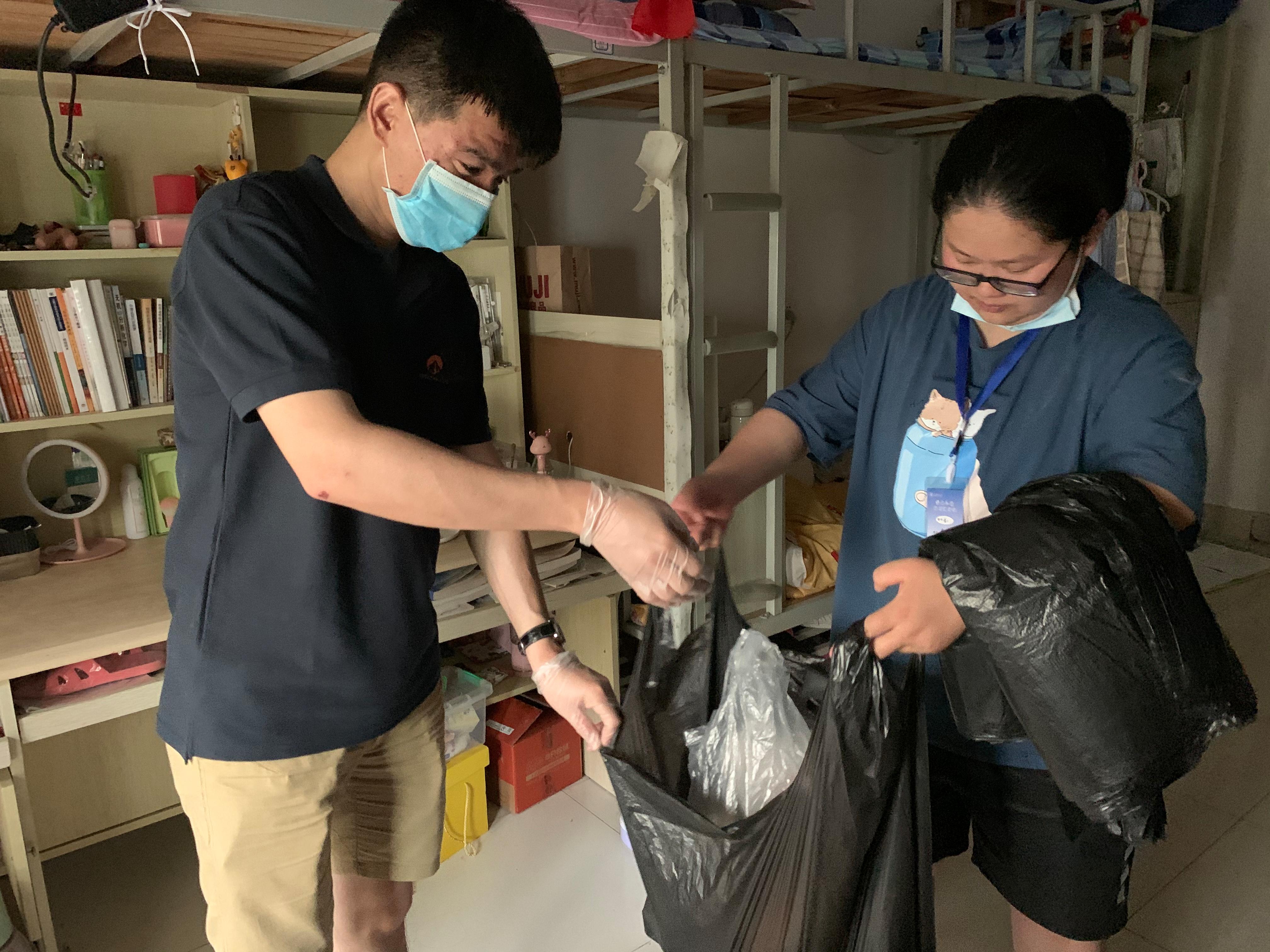 党委副书记张良红带领辅导员和返校志愿者深入学生宿舍开展了“心系学生,抗疫爱卫”清洁活动。全方位的清理打扫,彻底消除了卫生死角,确保学生返校后有温馨的居住环境,全面筑牢开学前的第一道防护网。