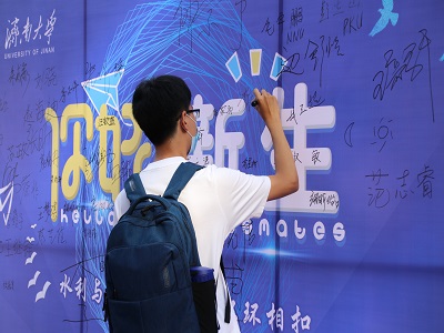 今年围绕“水环与你环环相扣”主题进行几点创新迎新安排。第一,迎新活动现场准备了迎新签名展板,新生们认真的在展板上签下自己的名字,手持“确认过眼神,你我都是水环人”“扣好人生每一粒扣子,过好大学每一个日子”等标语展板与家长合影留念作为“开学第一课”。第二,新生们在报到时都收到了印有“水环与你环环相扣”字样的手环与小风扇,做为新生的入学纪念。第三,“一见钟情,两心欢喜,三生有幸,四年水环我陪你”宿舍楼门前早已悬挂好的趣味横幅,让不少第一次离家的新生感受到了温暖。