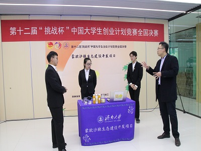 多次组织模拟答辩,邀请专家进行培训,带领参赛团队稳步前进,不断提高作品质量,训练同学组织应变能力。通过院生之间的不懈努力,一步一步走向了国赛决赛的舞台。在决赛问辩现场,蒙欧沙棘队的同学们反应敏捷,展现出高水准的创新精神和学术素养,最终以出色的表现荣获得国家级银奖的优异成绩。
