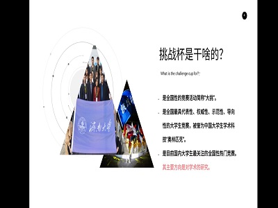 在本次宣讲中,首先由王翘楚同学为大家具体介绍挑战杯的比赛内容、比赛要求、比赛项目类别、申报书具体填写要求以及挑战杯与创青春的区别。随后向同学们细致讲解挑战杯和成人av