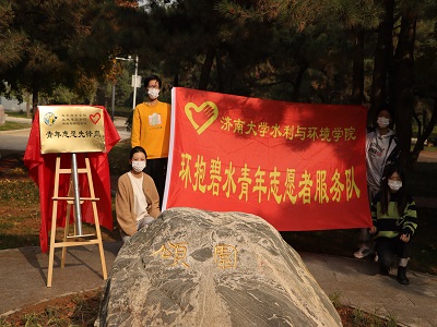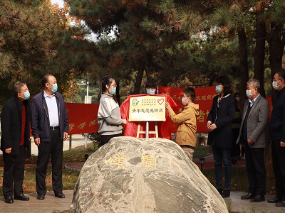 的学生代表上前揭牌,标志着“颂园青年志愿先锋岗”的建成。随后,全体师生在青年志愿先锋岗后合影留念。至此,此次活动落下了圆满的帷幕。