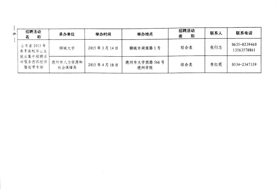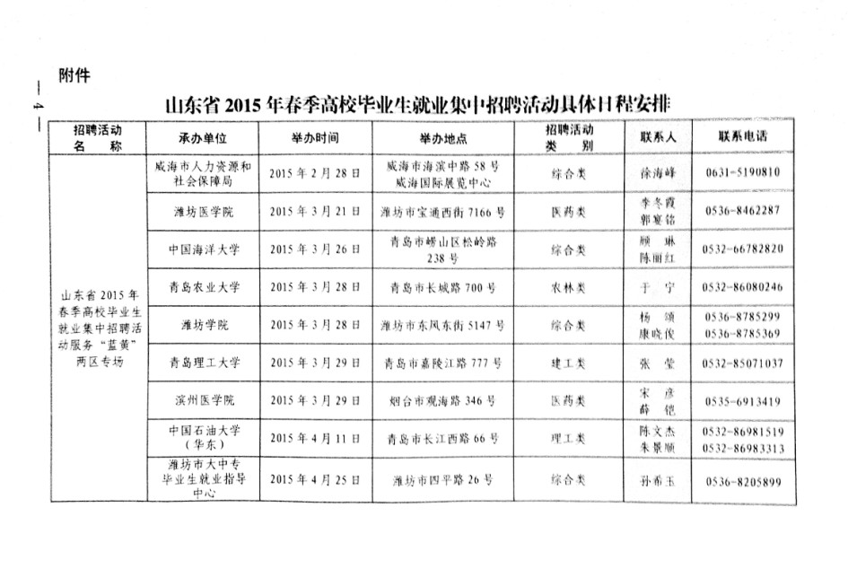 山东省2015年春季高校毕业生就业集中招聘活动日程安排