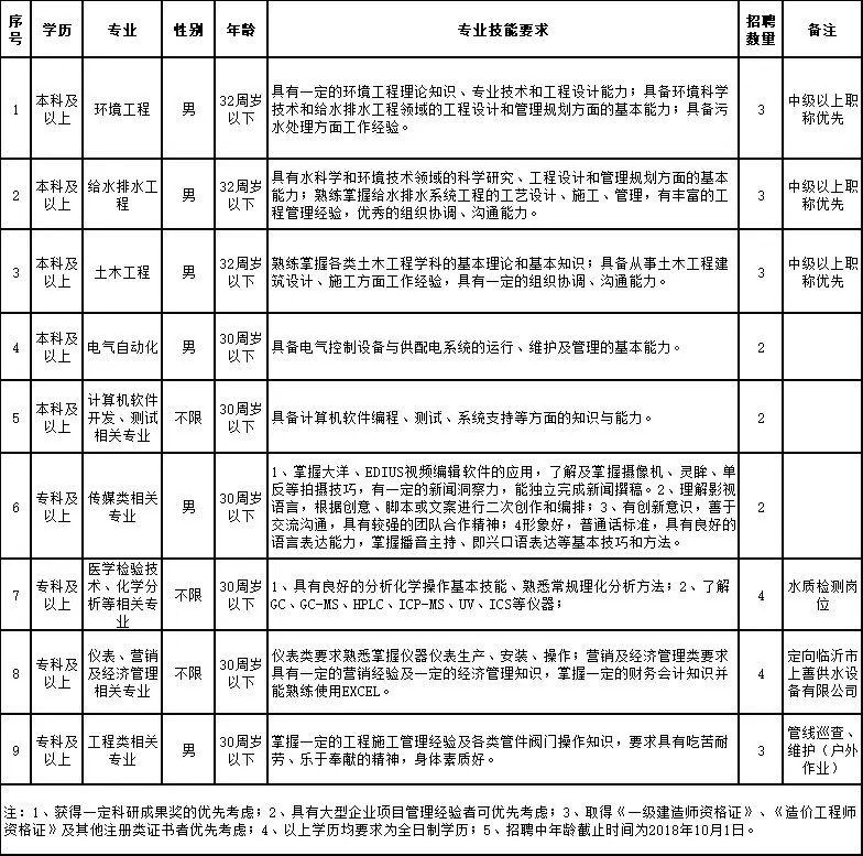 1、应聘者通过山东省公共招聘网 ()、市国资委网站()、市水务集团网站( )下载《临沂市水务集团2018年公开招聘专业技术人员报名人员简历表》及《临沂市水务集团2018年公开招聘专业技术人员报名资格审查登记表》(以下简称《登记表》),填写并发送至指定邮箱。报名时间:2018年10月9日至2018年10月21日。