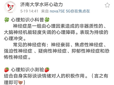 自律会心健部于5月9日至5月21日特此开展“心理知识小课堂”微博打卡活动。