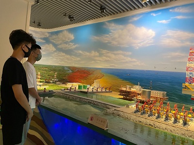 沿着黄河流域的历史脚步,团队成员在黄河文化从彩陶、青铜器文物中触摸了历史,领略浓墨重彩的黄河文化。黄河文化馆以“纵览黄河、感知东营”为展览主题,整个场馆展览紧扣黄河文化,采用现代化的声光调控技术,再现了黄河流域的历史人文特色,展现黄河风采,讲述东营故事。接着,在黄河河口管理局徐玉堂处长的带领下,团队成员们来到黄河模型大厅(在建)。“模型黄河”试验室中的黄河是“原型黄河”中自然现象的再现,探索了自然界水流泥沙运动基本规律和潜在机理。在这里,徐处长为大家详细介绍了河段实体模型的基本情况以及近年来开展的主要试验工作,带领大家了解黄河大堤、滩区、河道等基本概念、模型制作、河道断面以及洪水期间河势演变、滩区的淹没情况。徐处长的讲解对团队的调研工作起到了极其重要的作用,通过对模型黄河知识的了解,团队成员解开了很多关于黄河发展的疑惑,也为更好的保护黄河打下了坚实的基础。