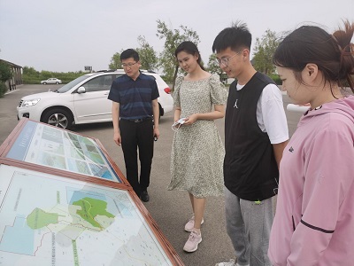 团队成员重走习近平总书记考察黄河路线,切实体会学习习近平总书记在深入推动黄河流域生态保护和高质量发展座谈会上的讲话,深刻感受“两个确立”的决定性意义。同时,实践过程中团队成员对黄河下游流经区域的地貌和环境进行了考察。实践队伍从鸟类博物馆开始,一路途径芦苇文化乐园、万亩槐林森林公园、黄河雕塑园到达远望楼,深刻感受到黄河所具有的独特魅力,更加坚定了团队成员保护黄河的决心。通过东营市黄河河口管理局徐玉堂处长的讲解,团队成员对黄河入海口附近的水文信息、水工建筑物数量及分布情况、政府对黄河流域的开发保护政策等进行充分了解。考察过后,团队成员对掌握的相关信息进行了进一步的总结,以便为保护黄河、助力黄河发展提出更加有效的建议。