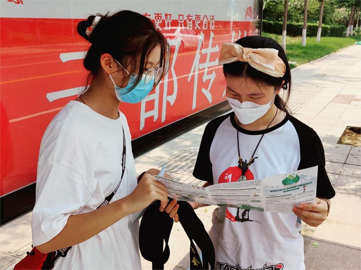实践活动期间,团队成员通过线下、线上相结合的方式,分别采用不同的宣传形式进行黄河文化的宣传与发扬。东营分队分队成员徐泽宇、刘泽蔚、宋文佳、燕浩景、张莹静一同前往了黄河文化馆进行了参观学习。沿着历史的脚步,从源头出发探寻黄河伟业的奥秘。从黄河起源,大禹治水、黄河六次大改道,团队成员真切感受到黄河的独特魅力。济南分队成员张晴宇、扈龙前往济南百里黄河风景区进行观光学习,对黄河沿岸的景观、植被情况进行了细致的考察与分析。科普分队通过线上、线下相结合的方式,在线上开展以“黄河的基本情况、黄河精神、黄河的生态现状、黄河的保护措施”为主要讲解内容的视频会议、调查问卷;在线下向社区居民分发环保宣传单,为他们细致讲解保护黄河的重要性,传播环保理念,并进行问卷调查,了解大众对母亲河保护的看法,为保护母亲河制定更具有针对性的措施。