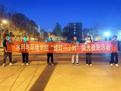 结合“推崇全民健身运动,促进健康中国建设”的社会热点于3月25日在北苑操场开展了以“节水节电,低碳有我”为主题的“熄灯一小时”荧光夜跑活动。