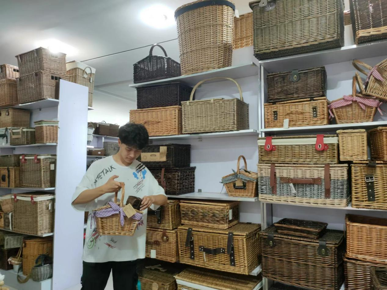 吴泓霖到达了鲁美达工艺品有限公司后在公司副经理刘师傅带领下参观公司展区。针对各色柳编作品的制作工艺刘师傅进行了专业的讲解,临沂传统柳编艺术与现代多元文化相结合所产生的惊人魅力在一言一句间浮现。吴泓霖通过拍摄与录音的形式对各种产品信息进行了系统的收集,为宣讲活动做准备。此次实地参观使得吴泓霖对公司未来的发展、柳编等非遗工艺品的发展现状,以及柳编产业对当地乡村振兴战略实施的影响有了更深入的思考和体悟。