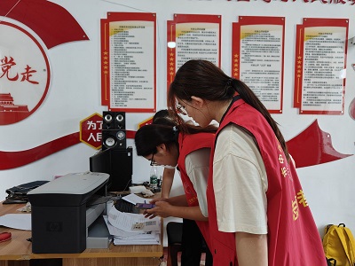 赴市中区暑期三下乡社会实践团成员王一琳、徐珂、边桐瑶于7月16日前往土屋村村委会,协助工作人员开展全村电子社保卡激活工作。