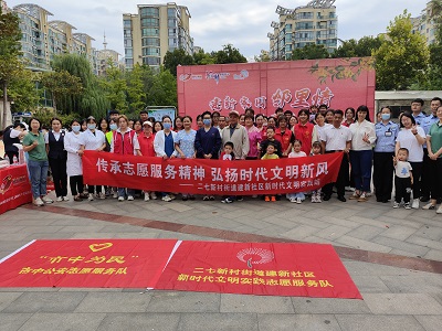 环抱碧水青年志愿者协会成员前往建新小区社区居委会活动广场举办“月圆中秋,情暖建新”邻里节活动现场展开志愿服务活动。