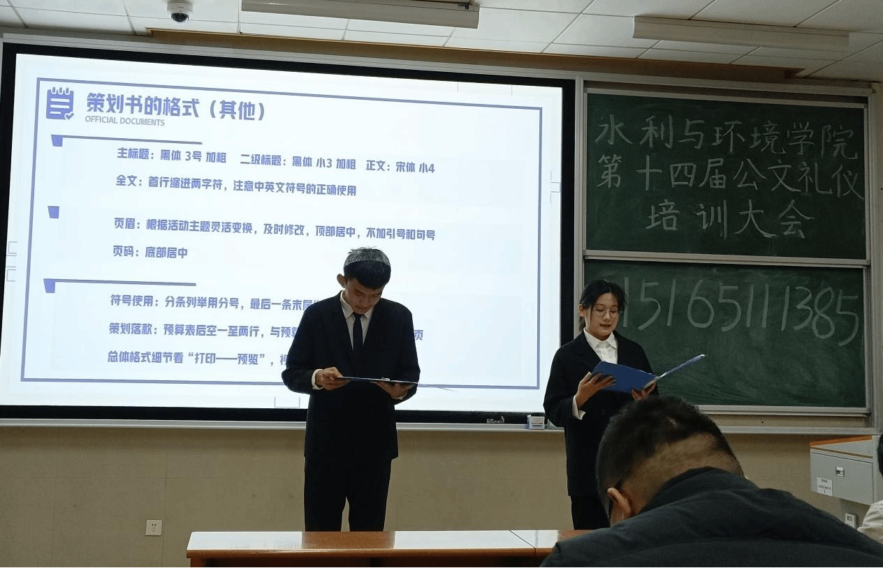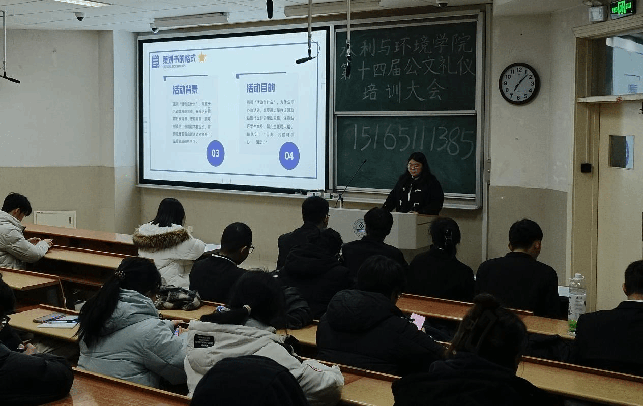 大会以“不学礼,则无立”为主题,突出强调公文礼仪的基本知识。本次大会主要分为公文写作指导与答疑互动两个环节。大会伊始,办公室副部长刘菲为大家介绍了公文的定义及其重要性。她表示,作为自律会的成员,学会如何写策划与通知,不仅能够帮助成员提高个人的职业素养和专业能力,而且能够有效地促进工作效率和组织运转。紧接着,刘菲向全体成员介绍了策划书写作的思路与要点,从策划的概念、特点、关键、格式等方面作了简要的概述并对以往策划书中不够完善的地方进行了详细讲解,为全体成员提供了明确的基本认知与经验指导。