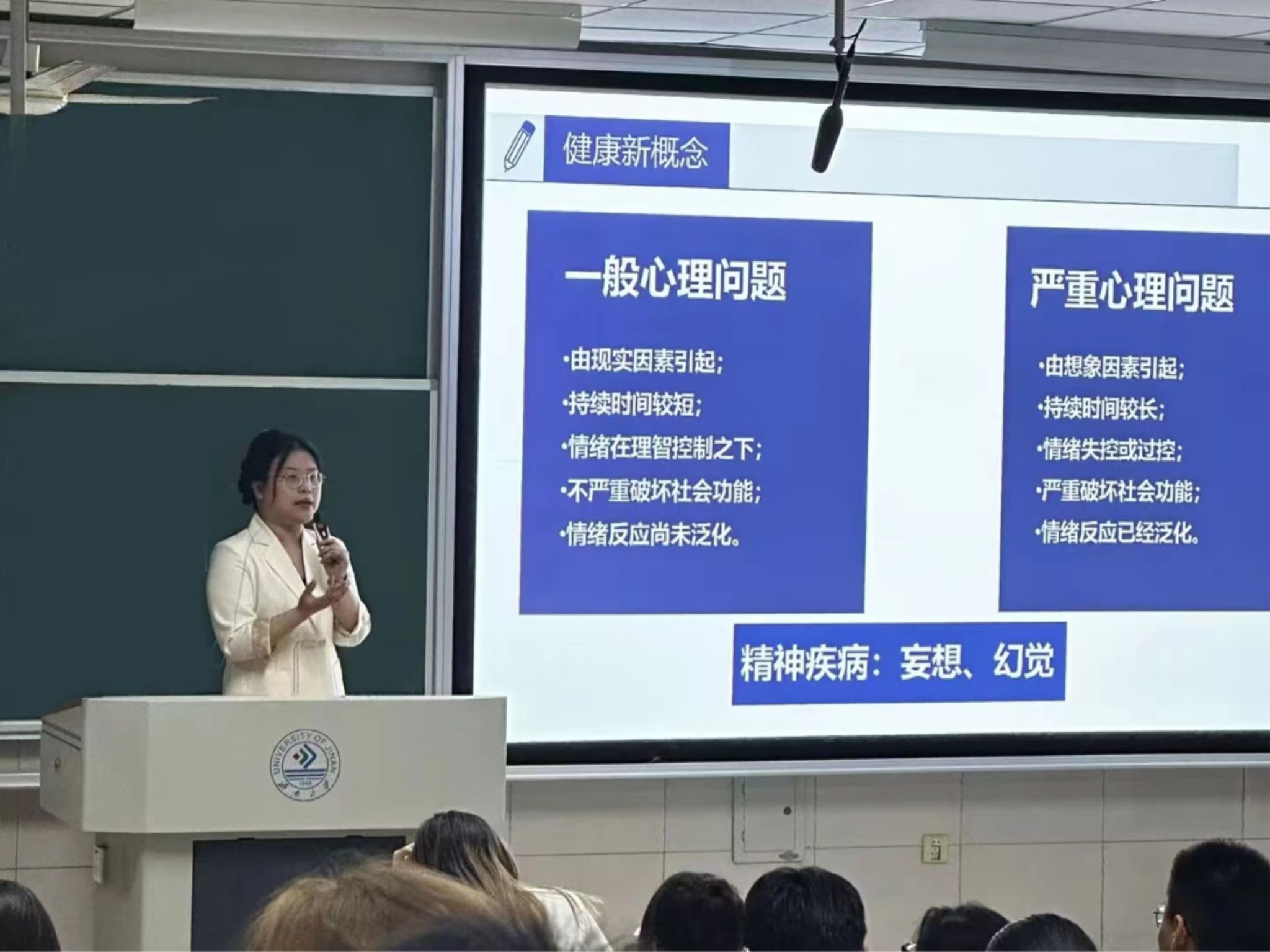 在培训大会上,高雅琳老师就“健康新概念”、“心灵使者的角色定位及职责”、“大学生常见心理问题”、“心理危机的识别及应对”以及“心理健康基本能力测试”几个方面对各班心灵使者和心灵联络员进行了详细的介绍。在讲课时,高雅琳老师不仅通过具体案例让同学们了解到心灵使者职务的重要性,还通过互动答题和演练的方式让同学们快速了解要点并转化为自己的知识运用出来,最终利用小测试的方法检测心灵使者对知识的了解情况。