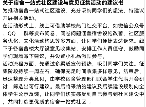 于4月份举办了围绕“生态家园‘宿’造未来,一站式社区启新程”为主题的第十五届宿舍文化艺术节,本次活动涵盖知识竞赛、作品征集等多样形式,得到了同学们的大力支持和积极响应。