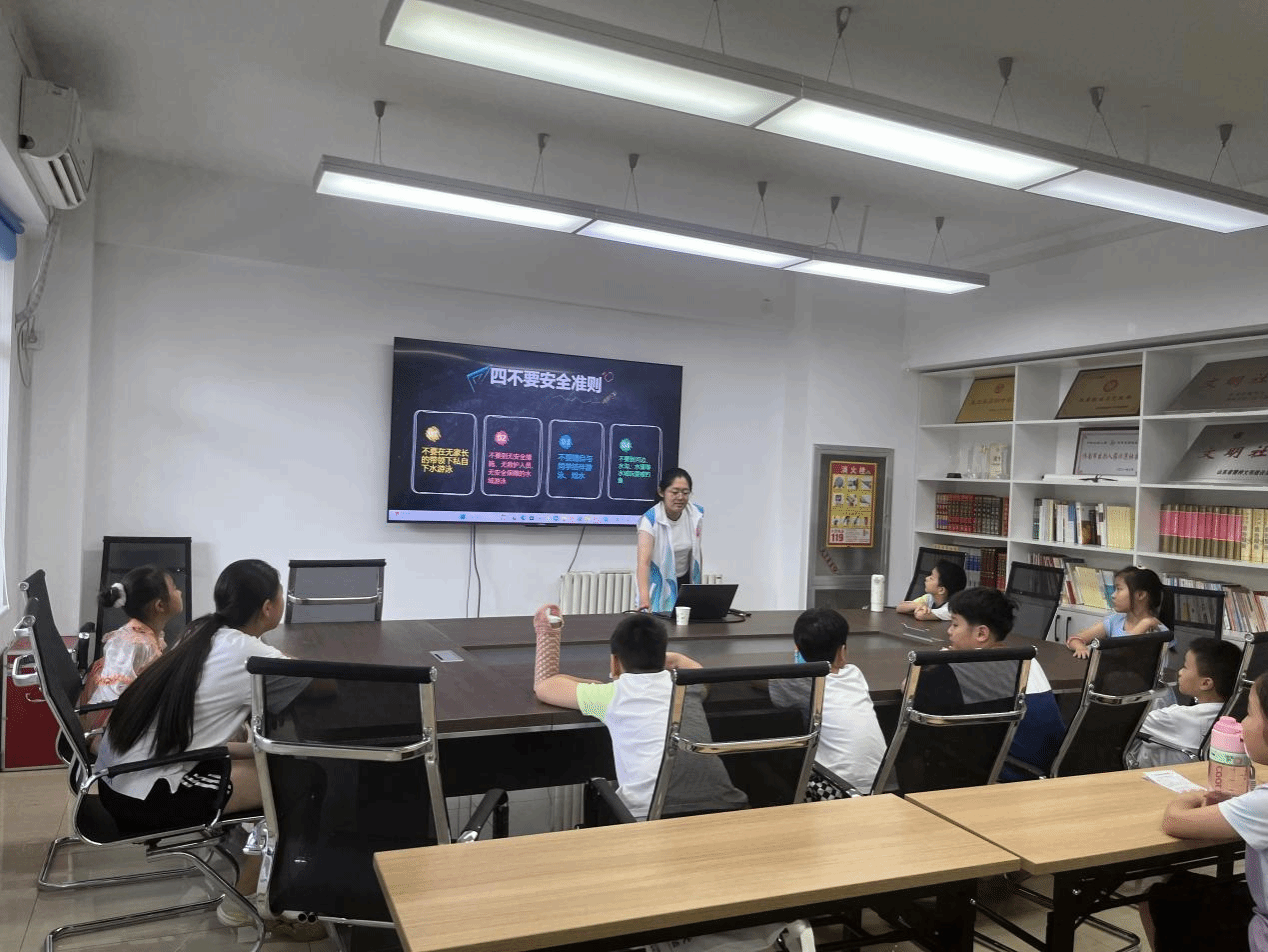活动初始,实践团成员与社区管理人员对接并开展筹备工作,共同明确活动整体流程与具体分工,围绕安全教育讲座的内容设计、互动环节等细节展开研讨,为实践活动的开展奠定了基础。随后,团队面向社区小学生开展防溺水和交通安全暑期安全教育讲座,通过案例讲解和互动问答环节,普及防溺水自救方法与交通安全规则。此次活动增强了社区小学生的安全防范意识,帮助他们掌握了基本的安全知识与技能。讲座结束后,团队成员向小学生发放安全知识手册,巩固学习成果。