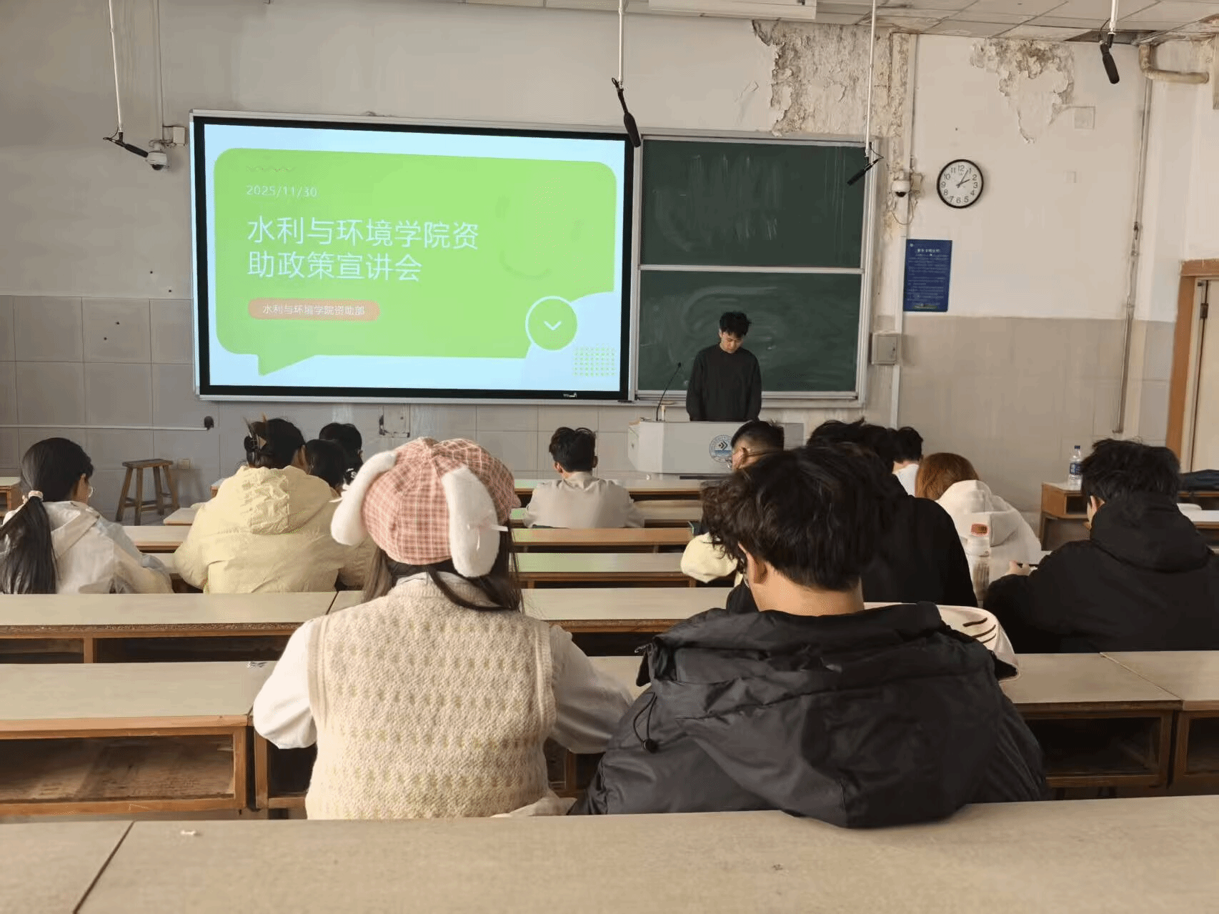 自律会资助部于第二教学楼301教室举办“知资助·享权益·共成长”资助政策宣讲会,学院学生积极参与。