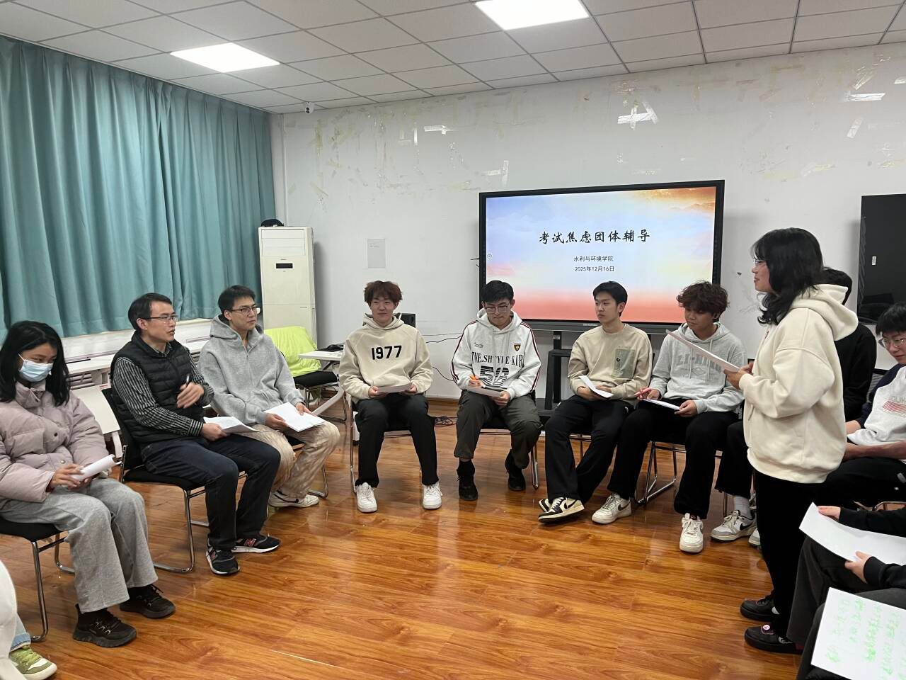 为帮助学生缓解期末考试压力,掌握应对考试紧张、焦虑等负面情绪技巧。12月16日,学院心理辅导员张玉虎老师在九教105开展了考试焦虑团体辅导,近20名学生参加了活动。