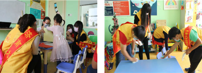 下午三点,志愿者们准时到达新阳光病房学校,他们有条不紊地对病房进行消毒清理并将玩具与教学材料摆放整齐。打完点滴的小朋友们陆续来到病房学校,在志愿者们的陪同下,小朋友们一起玩拼图、七巧板、积木。在随后的创意画画课程中,病房学校的郭老师声情并茂的讲着故事,小朋友们认真听讲并将所听到的内容描绘出来。此外,他们还利用打孔器打出各式各样的图案,将其贴到自己的画作上,使画作更加生动完善,看着自己作品的完成,孩子们那小小的脸颊盈满笑意。欢乐的时光总是短暂的,临别之际,孩子们依依不舍,期待着志愿者们的再次到来。