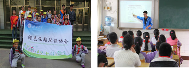 青年志愿者协会、格润环保协会与绿色飞翔环保协会走进南辛庄小学开展环保教育活动。