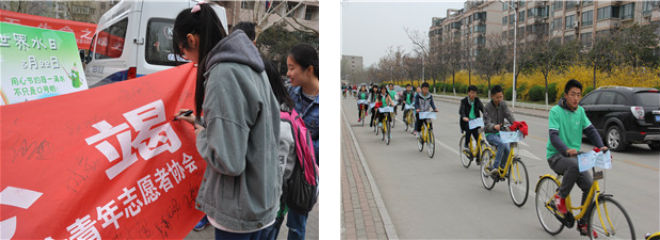 “当我看到单车骑行的队伍时,已然被他们的真情和热情所打动,我在想当有那么一帮人为了宣传节水意识努力付出时,我有什么理由再去挥霍每一滴珍贵的水”,记者随机采访的同学说到。