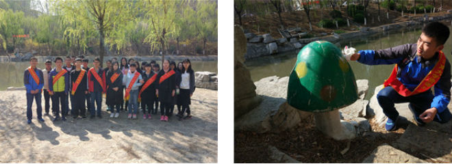 上午10点,志愿者们早早来到甲子湖畔的半月桥下,来不及欣赏周围的美景,志愿者们按计划分组,以饱满的热情投入到保护水资源的行动中去。志愿者们来到甲子湖的两岸,将散落的垃圾收集起来,并进行垃圾分类。为了进一步彻底的清理,大家更是用自制的垃圾夹捡拾湖面上的垃圾,还给湖面一份新的面貌。志愿者们还呼吁过往的同学与他们一起共同维护甲子湖的美好环境。正是由于志愿者不惧苦,不喊累的精神,甲子湖才能在浓浓春意中焕发新机,也带给同学们一缕清爽。