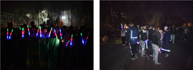 举办的“地球一小时荧光夜跑”活动不仅通过新颖的运动方式,激发了同学们的锻炼热情,丰富了校园文化生活,同时号召同学们,走出宿舍,走下网络,走向操场,节约能源,提高同学们的低碳环保意识。