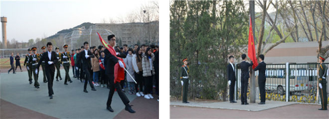 于北苑大操场举行升旗仪式,2016级全体学生到场参加。