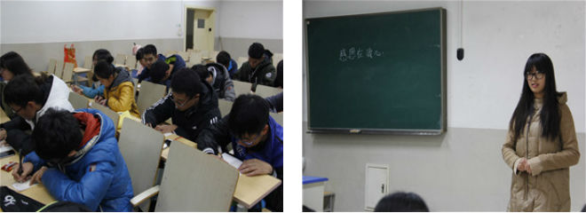 主持人首先向同学们介绍了感恩节的由来,并让在场的同学们在小纸条上写下了自己最想感恩的人。互动环节几位同学的精彩发言让现场十分温馨。同学们有的感恩父母,感谢他们赐予自己生命,在自己的成长道路上给予自己无限的爱与关怀,把一个呱呱坠地的婴儿抚养成成熟睿智的少年;有的感谢老师,感谢他们在自己入学后提供的指导与帮助,解决了初进大学时的迷茫与困惑,明确了努力的方向。大家畅所欲言,纷纷表达出了对家人、同学、朋友等的感谢之情。在互动环节表现优异的同学被准许把自己表示感恩的话写在明信片上由主办方寄送到被感恩的对象处,活动在一片温馨融洽、和谐温暖的气氛中结束了。