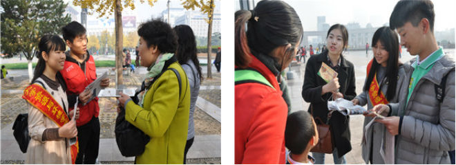 上午九点,志愿者们到达大众传媒大厦。本次爱心义卖活动的负责人张秀华老师向同学们发放报纸,并与志愿者们合影留念。随后,志愿者们手捧报纸来到泉城广场开始报纸义卖活动。在游人如织的广场上,志愿者们鼓足勇气,勇敢地走向陌生人,向他们讲述此次报纸义卖的意义。原本行色匆匆的市民在听同学们讲述了本次活动的意图后,当即表示愿意购买报纸,不仅如此,很多热心市民还用高于报纸价格几十倍的价格向玮玮小朋友捐献一份爱心。志愿者们为来自陌生人热情的援助而感动的同时,加快了义卖报纸的脚步。很快,志愿者们完成了报纸售卖任务。格润环保协会的代表和张秀华老师一同来到医院的重症监护室看望玮玮,将善款交到孩子的父母手上,并祝愿孩子能够早日康复。