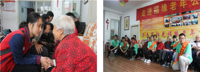 暖阳敬老志愿者服务队探望养老院的爷爷奶奶们,不仅为老人们送去了温暖,感受到来自社会各界的关爱。同时,参与志愿服务的大学生们开始接触社会,学会与不同年龄层次的人群交流,从而提高适应社会的能力,懂得了奉献的快乐。