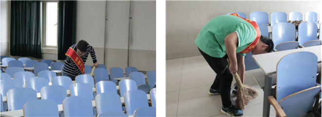 “绿色之光”服务队在第十教学楼进行卫生清扫志愿服务。